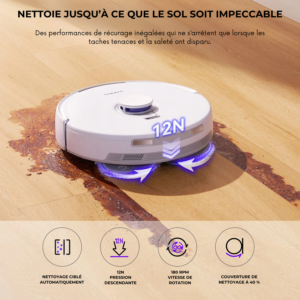 ✅ Technologie intelligente : Détecte les taches et évite les obstacles avec précision.
