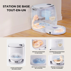 ✅ Autonomie complète : Se vide, lave et sèche ses serpillières sans intervention.